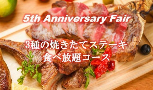 『5周年記念 厳選ビーフのステーキビュッフェコース』